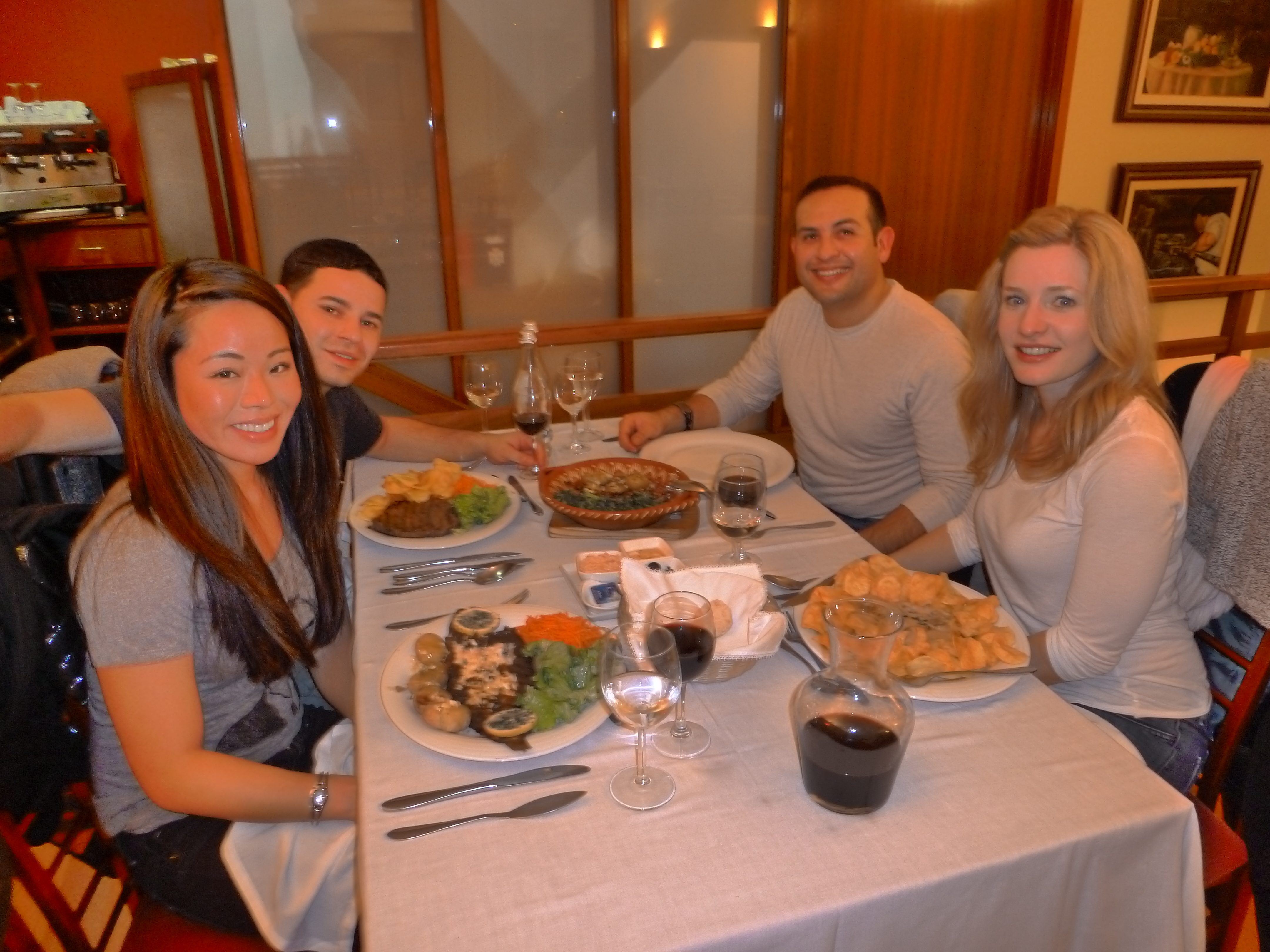 We had a light lunch along the river at a cozy café.  Since the weather was chilly but still nice we sat outside next to the heaters, and there were blankets on the chairs for extra warmth.  Our friend Kenny is Puerto Rican and was excited to see Bacalao on the menu, which is a fish fritter made with salted and dried cod.  It looked crispy and delicious, but alas, my peculiar finned-fish allergy kept me away.  Eventually we made our way back up the cable car, across the bridge and went back to the apartment for a little rest before heading out for dinner.
